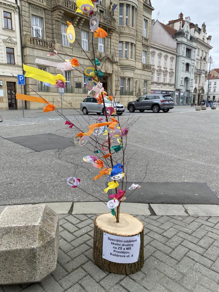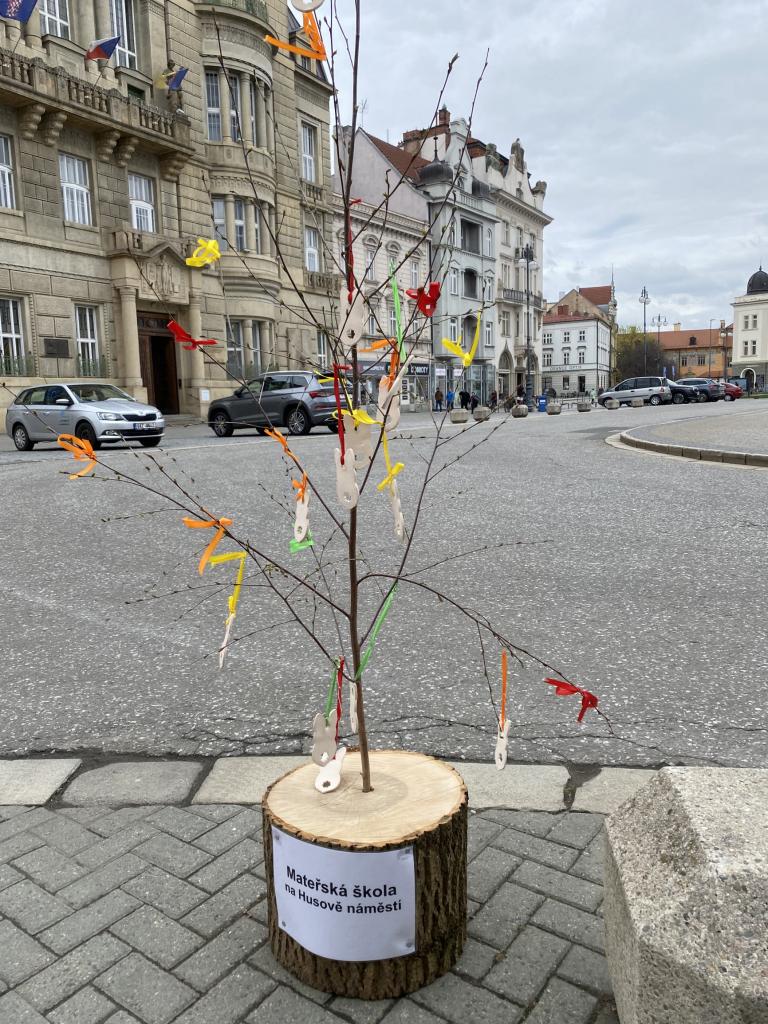 Naše škola se tradičně podílí na sváteční výzdobě náměstí T. G. Masaryka. Letos ozdobily stromečky vlastnoručně vyrobenými velikonočními dekoracemi děti ze 3. A, 7. B a ze školní družiny.